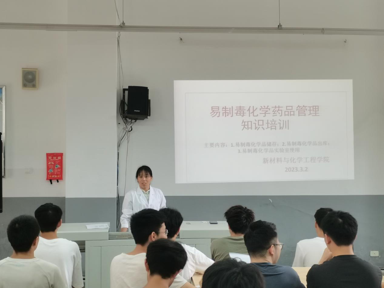 邓晓容讲解了易制毒化学药品的储存和出入库管理,包括易制毒药品仓库必须落实双人双锁、取用药品需双人领用以及药品出入库建立登记台账等制度。最后要求大家在实验室操作的时候必须按照管理制度执行,并严格做好个人防护。
