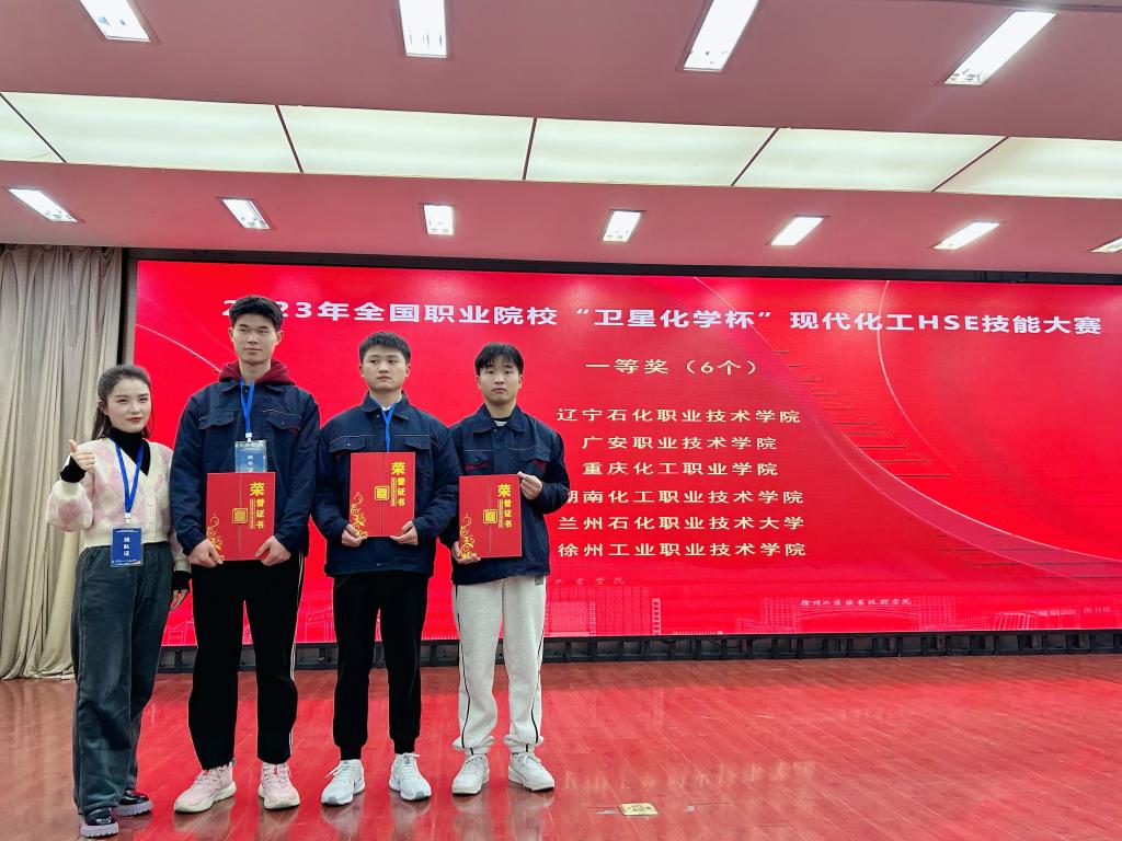 2023年12月21日至22日,公司员工吴忠兵、刘云飞,温国豪,组队参加2023年全国高职院校现代化工HSE技能竞赛,荣获一等奖。本次比赛由全国石油和化工职业公司产品指导委员会指导,中国化工教育协会主办,徐州工业职业技术公司承办,共有来自包括淮南联合大学、兰州石化职业技术大学、海南科技职业大学等在内的本专科公司共45支队伍参加,共评出6个一等奖。