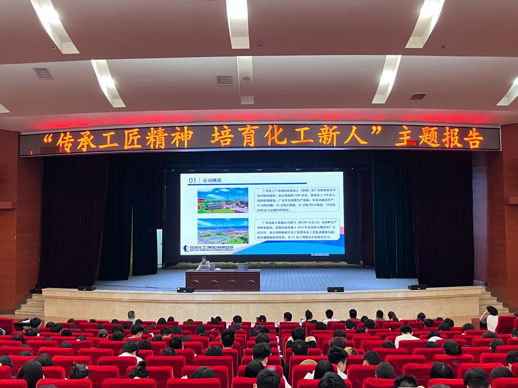 李洋洪从“爱岗敬业、不畏困难、刻苦专研、勇于创新、精益求精”的工匠精神层面,与同学们分享了自己的求学与工作经历,以及技术攻关与创新的经验。同时,用自己丰富的从业经验,讲述了化工行业对人才的要求,激励同学们学好专业知识,练好专业技能,树立正确的就业观。