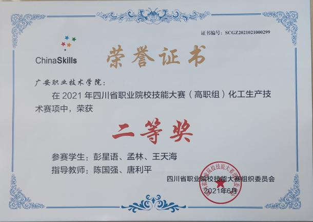 公司学风浓厚,员工善思笃行。员工参加国家级、省级技能大赛和创新创业比赛,获得国家级一等奖2项、省级二等奖3项、三等奖1项,两次代表四川省参加全国职业院校化工生产技术技能大赛。获得“发明杯”老员工创新创业大赛二等奖2项、三等奖3项,“互联网+”老员工创新创业大赛省级银奖1项、铜奖1项。